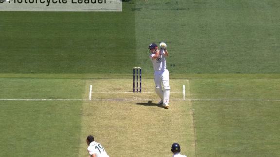 The England batter steps out and hits Starc for a boundary