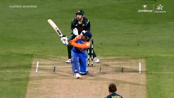 Tilak Varma takes on the spin of Matthew Short and clears the boundary