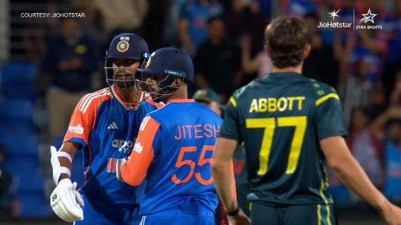 Washington Sundar takes down Sean Abbott in the Hobart T20I on Sunday