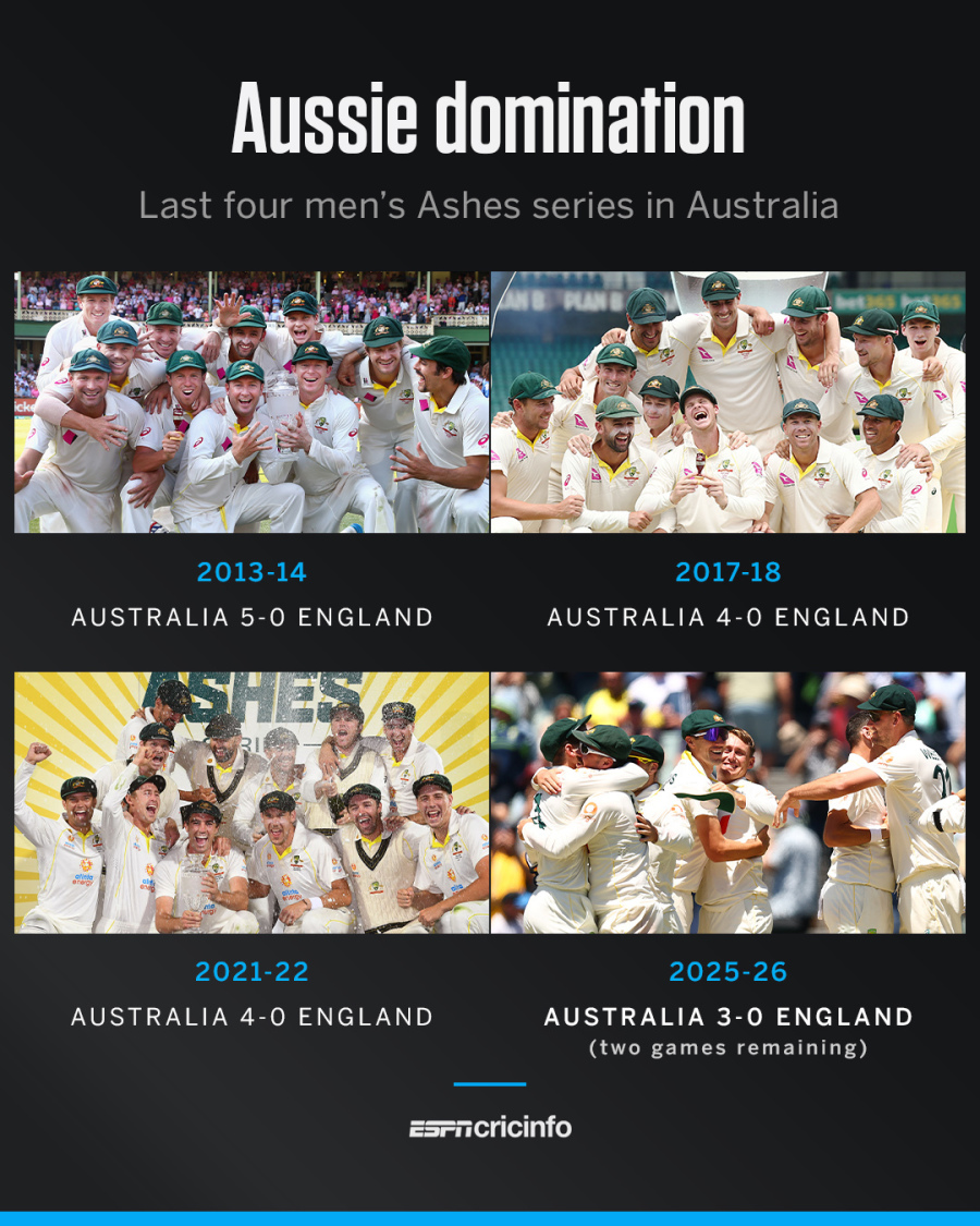 Stats - Another home Ashes win for Australia, England horror run continues