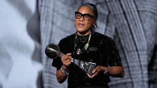 LOS ANGELES -- Led by host Serena Williams, The ESPYS celebrated a landmark year for women's sports, with Simone Biles, A'ja Wilson, Caitlin Clark, Dawn Staley and JuJu Watkins among the honorees Thursday night. Staley, coach of the national champion South Carolina women's basketball team, received the Jimmy V Award for Perseverance for both her support and fight for equality for women's sports and for her leadership in the fight against cancer. Her friend, Tennessee standout Nikki McCray-Penson, died of breast cancer and Staley's sister was diagnosed with leukemia. Staley was motivated by their battles to become an advocate for cancer research. "I must confess I feel a little undeserving of this recognition. Past recipients of the Jimmy V Perseverance Award have faced incredible challenges and proven themselves as true warriors," Staley said. "I have merely been a spectator to such immense courage and resilience." Staley's Gamecocks also won the best team award. Wilson of the Las Vegas Aces won as best women's sports athlete and as best WNBA player. "It's crazy to think that a young girl that didn't even want to play basketball is now up in the running for even one ESPY," she said in videotaped remarks. Biles earned best comeback athlete weeks before she competes at the Paris Olympics. The most decorated gymnast in history withdrew from the team competition at the Tokyo Games to prioritize her mental health.  Clark of the Indiana Fever also earned two trophies, for record-breaking performance in becoming the NCAA's all-time career scoring leader, and as best college athlete, for her Iowa basketball career. "I'm a little bit busy in Indianapolis," Clark said via videotape. "It was a special year in women's athletics." Watkins won best breakthrough athlete, taking the first award after President Joe Biden's nationally televised news conference started late and ran 30 minutes into the show's timeslot. The USC basketball star had a standout freshman season, leading the Trojans to the Elite Eight of the NCAA tournament for the first time in decades. "This is crazy," Watkins said. "I want to thank all the great, powerful women who came before me that made this possible." Williams joked during her monologue at the Dolby Theatre in Hollywood and later sang after Ciara opened the show with a musical performance. Williams' older sister, Venus, came out and joked that she had actually been asked to host and the siblings got into a mock argument. "You may be wondering why I'm doing this," noted fashion fiend Serena said. "Any opportunity to wear 16 outfits in three hours, I'm going to take it." The ABC telecast returned from a commercial break in the final minutes and began repeating the presentations of two earlier awards. Williams' goodbye was cut off, as were the final credits. ABC said a technical glitch in the feed affected the live show in the East and Central time zones. It was to be corrected for tape-delayed viewing in the West. Prince Harry received the Pat Tillman Award for Service, and he mentioned the late Army Ranger's mother who had criticized ESPN for honoring the royal. With wife Meghan joining in a standing ovation, the Duke of Sussex accepted the trophy from three service veterans who were injured during their tours of duty. Harry served in the British military for 10 years, including two tours in Afghanistan as a helicopter pilot. He created the Invictus Games in 2014, which serves as a multisport, paralympic-style games for wounded or injured servicemen and veterans. "This award belongs to them, not to me," Harry said. Tillman's mother, Mary Tillman, had criticized ESPN's choice of Harry, saying there are recipients working in the veteran community who would have been more fitting. Harry thanked Tillman's widow, Marie, for her attendance and also acknowledged Mary Tillman. "Her advocacy for Pat's legacy is deeply personal and one that I respect," he said. "The bond between a mother and son is eternal and transcends even the greatest losses." Retired NFL safety Steve Gleason was honored with the Arthur Ashe Award for Courage. He was diagnosed with ALS or amyotrophic lateral sclerosis, also known as Lou Gehrig's disease, in 2011. His nonprofit, Team Gleason, helps people with ALS live purposeful lives by providing programming and support services. Gleason received a standing ovation when he took the stage in a motorized chair and was kissed by former New Orleans Saints teammate Drew Brees. Gleason's voice was heard through special technology. His young son, Rivers, stood next to his father and held the trophy. "For me, this honor represents some encouragement and triumph for the families currently living with ALS, all the people living with disabilities or other illnesses," he said. "I suppose if you have never experienced fear, isolation or suffering, you can roll your sanctified ass right out of here." Shohei Ohtani of the Los Angeles Dodgers was best MLB player; Connor McDavid of the Stanley Cup runner-up Edmonton Oilers was best NHL player; and Luka Doncic of the Dallas Mavericks was best NBA player. The best men's sports athlete was Kansas City Chiefs quarterback Patrick Mahomes. He also claimed best NFL player. Cooper Flagg, a senior guard-forward from Montverde (Florida) Academy, and track and field athlete Sadie Engelhardt of Ventura (California) High won the Gatorade National Players of the Year. The Associated Press contributed to this report.