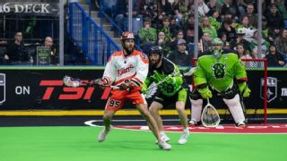Saturday's games Buffalo Bandits 9, Saskatchewan Rush 7 Dhane Smith and Josh Byrne led the way in this showdown between the NLL's top two teams. Smith had five assists in the win, moving him to 10th on the all-time scoring list, ahead of legend Gary Gait. Byrne scored two goals and added four assists for the victors. Zach Manns provided the spark for the Rush, scoring four out of his team's seven goals. Bandits goalie Matt Vinc held things in check. Colorado Mammoth 11, Calgary Roughnecks 8 Calgary goalie Nick Rose's welcome to the West didn't go as planned. Rose allowed five goals in the first quarter before finding his form in the loss. Eli McLaughlin led the Mammoth with four goals and one assist, while teammate Ryan Lee scored two goals and added five helpers. Halifax Thunderbirds 9, Las Vegas Desert Dogs 5 The visitors from Nova Scotia have won five straight games and maintained their hold on the No. 3 spot in the standings. Cody Jamieson scored twice for the Thunderbirds, joining Thompson in the 350-goal club. Eight players scored for Halifax in the win.