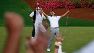 16. Adam Scott breaks the Aussie hoodoo and wins the 2013 MastersThis is one of those "I remember where I was" moments. And for many, that will have been the office on an otherwise depressing Monday morning. But there is nothing like the gentle acoustic and piano melody of the Masters music to ease a bad case of Monday-itis. On April 15, 2013 (April 14 in Augusta, Georgia), that melody took on whole new significance as the Australian sporting collective held its breath as Adam Scott chased history. The final day had been as dramatic as it had been long. At one stage or another on Sunday, each of Scott and fellow Australians Marc Leishman and Jason Day looked like they might be the one to achieve one of the lasting Holy Grail achievements in Australian sport. But when a slippery downhill birdie putt on the 72nd hole dropped in, Scott had secured himself at least a shot in a playoff, which then eventuated when former champion Angel Cabrera stuck his approach to two feet and rolled in the simplest of birdies. Amid deteriorating light and persistent showers, the two men then took off down 10 on their first playoff hole. When Cabrera's birdie circled the hole, the stage was set for Scott to carve his name into golf, and Australian sports, history. With the right read from caddie Steve Williams, Scott stroked his broomstick calmly, his Titleist dropping into the heart of the cup to complete an unforgettable moment at Augusta National and have thousands of Australians cheering in their lounge rooms, offices, and golf clubs back home. A photograph of Leishman celebrating his playing partner's birdie on the 72nd hole, which has become one of the lasting images in Australian golf, typified just how much Scott's triumph meant to the country. He remains the only Australian to own a famous green jacket. -- Sam Bruce
