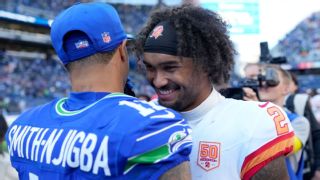 Emeka Egbuka and Jaxon Smith-Njigba headlined African stars' involvement in week 5 of the NFL, putting in huge shifts in a clash between the Tampa Bay Buccaneers and Seattle Seahawks that one had to win but neither deserved to lose. Elsewhere, there were notable moments on offense from David Njoku and Alvin Kamara, while defensive players of African descent picked up sacks galore throughout the league. However, in the Buccaneers' 38-35 win over the Seahawks, offense was king. Most headlines have focused on the titanic tussle between Baker Mayfield and Sam Darnold, but neither could have had the performance they did without the help of Egbuka and Smith-Njigba respectively. African Player of the Week: Emeka EgbukaEgbuka starred in the Buccaneers' narrow win with 163 receiving yards across seven catches and a touchdown. The rookie wide receiver of Nigerian descent scored a crucial touchdown off a 20-yard Baker Mayfield pass in the third quarter and then additionally caught the ensuing two-point pass. As a result, the Buccaneers converted a 14-13 deficit into a 21-14 lead. Egbuka's longest catch of the day was for 57 yards and a whopping six of his receptions were first downs. He now has five touchdowns for the season, but his impact on the team stretches far beyond that stat alone. The Bucs are 4-1 for the season and continued their perfect record on the road with the win at Lumen Field.  African Moment of the Week: Jaxon Smith-NjigbaSmith-Njigba ended up on the losing side of the Bucs vs. Seahawks clash despite making up 132 yards across eight receptions, including a touchdown. However, his 53-yard catch off third down in the lead-up to a third-quarter touchdown from AJ Barner was the most memorable moment of the week. Egbuka had just put the Buccaneers in the lead when Smith-Njigba pulled off a hugely impressive catch, expertly angling his body to ensure he got to the ball first, plucking Darnold's pass out of the air ahead of Antoine Winfield Jr. All of a sudden, the Seahawks were at first & goal and they capitalized to level the scores. Although they were ultimately beaten, it was not for the want of trying from Smith-Njigba, who has had at least one catch of at least 36 yards in every game this season. Honorable mentionsDavid Njoku - of Nigerian heritage - scored a touchdown for the Cleveland Browns in their 21-17 loss to the Minnesota Vikings. Meanwhile, it was a landmark weekend for the New Orleans Saints' Alvin Kamara (of Liberian descent). He became the running back with the fifth-most receptions in NFL history, taking his total to 590 and surpassing Marcus Allen. The Saints beat the Giants 26-14. In the history of the league, the only running backs with more receptions than Kamara have been Marshall Faulk, Larry Centers, LaDainian Tomlinson and Keith Byars. Osa Odighizuwa picked up a sack for the Dallas Cowboys in their 37-22 win over the New York Jets, while another player with ties to Nigeria - Eyioma Uwazurike - got an important one for the Denver Broncos in their 21-17 win over the Philadelphia Eagles. Charles Omenihu - also of Nigerian descent - got a sack for the Kansas City Chiefs against the Jacksonville Jaguars. However, the Jags picked up a 31-28 win, with 14 tackles from Foyesade Oluokun playing a part. Africa-born Player WatchZimbabwe's Nate Landman matched Oluokun's 14 tackles, but ended up on the losing side as the LA Rams went down 26-23 to the San Francisco 49ers in overtime. Joseph Ossai's sack for the Cincinnati Bengals against the Detroit Lions came in a 37-24 defeat. However, his Nigerian compatriot Samson Ebukam got a sack for the Indianapolis Colts in their 40-6 drubbing of the Las Vegas Raiders. The Baltimore Ravens' tough start to the season continued with a heavy defeat to the Houston Texans, but Nigerian IPP product CJ Okoye continues to hold his own at the top level and made four tackles in his second regular season game to add to the three he got on debut.
