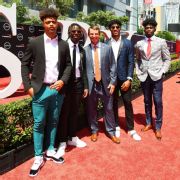 Former U.S. Marine Corps Sergeant Kirstie Ennis was presented with the Pat Tillman Award for Service on Wednesday night. After suffering severe injuries in a helicopter crash while she was on active duty in Afghanistan, doctors amputated Ennis' left leg below the knee.  Former UCLA gymnast Katelyn Ohashi, who won ESPYS for Best Viral Sports Moment and Best Play, takes a different tack on the red carpet.  Former Patriots tight end Rob Gronkowski, who was honored alongside Lindsey Vonn and Dwyane Wade for Best Moment, greets Captain Obvious before the official festivities begin.  Rob Mendez arrives on the red carpet before being honored with the Jimmy V Award for Perseverance. Born with no arms and no legs, Mendez lives and breathes his mantra of "Who says I can't?" as the head coach of the Prospect High School (Saratoga, California) JV football team.  Hannah Storm, Ciara and Russell Wilson met up on the red carpet during the 2019 ESPYS. Later, Ciara and Wilson would present the Jimmy V Award to Rob Mendez.  Like the other athletes on the red carpet, the Cadillac's CT6 is agile and fierce. From tight cornering to open roads, every ride is one to conquer and remember.  Celtics legend Paul Pierce lets everyone know he has arrived for the ESPYS.  Clemson football coach Dabo Swinney and some of his fellow national champion Tigers are ready for the party at the 2019 ESPYS.  Bobby Witt, selected No. 2 in the MLB draft by the Kansas City Royals, and Kelley Lynch, committed to Washington softball, show off their latest trophy, the 2019 Gatorade National Player of the Year award.  Tyler "Ninja" Blevins and his wife, Jessica, take a break from the world of all things esports to take in the 2019 ESPYS.
