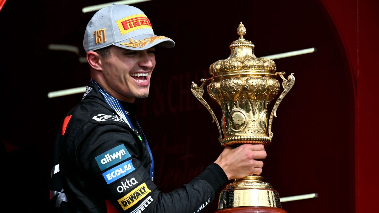 Lando Norris emerged victorious in a wet and wild British Grand Prix that saw McLaren teammate Oscar Piastri stripped of his chance of victory by a 10-second penalty for a safety car infringement.