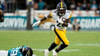 Hampton's potential in this offense relies significantly on Najee Harris' status. Harris still hasn't run at practice -- at least with media present -- as he recovers from an eye injury he sustained during a fireworks mishap on July 4. If Harris is healthy, these two will likely split carries, and offensive coordinator Greg Roman has shown he will ride with the hot hand. For that reason, fantasy owners should proceed cautiously with Hampton, who has a high ceiling in a complicated backfield. -- Kris Rhim