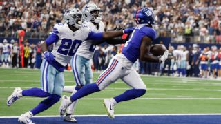 Ranking fantasy winners of Week 2 1. Malik Nabers, WR, New York Giants: He was a sophomore standout on Sunday, scoring a career-high 37.7 PPR fantasy points, including a 48-yard, fourth-quarter touchdown that at the time looked like a game-winner. Brandon Aubrey's 64-yard, game-tying field goal bought Nabers, his Giants and the opposing Dallas Cowboys a complete overtime period to pad their stats, but don't let that take anything away from how impressive Nabers looked in Week 2. His touchdown was a thing of beauty, caught despite having Kaiir Elam's hand on his face mask, and one that Next Gen Stats calculated with a 16% catch probability. Nabers is a true superstar, proving his worth as a clear fantasy first-rounder from the preseason, with the only question surrounding him how he might fare should rookie Jaxson Dart emerge as the team's starting quarterback in the coming weeks. Credit Russell Wilson for his big game as well, with the only negative being the interception he committed late in overtime that led to a Cowboys walk-off field goal. Wilson scored 30.30 fantasy points and, at times, had similar touch for the deep ball that he had during his Seattle heyday. Wan'Dale Robinson also continues to impress as a heavily targeted, short-range receiver, though Wilson's willingness to target him deep fueled Robinson's career-best 28.2 points. -- Cockcroft 2. Amon-Ra St. Brown, WR; Jared Goff, QB, Detroit Lions: I'll take some heat on this, as I expected Goff and this Lions offense to possibly take a step back after their sub-par numbers in the Week 1 loss to Green Bay. However, with Goff working from clean pockets versus an absent Bears pass rush, and St. Brown winning his one-on-ones, this Detroit unit looked explosive again. Goff had 33.96 points, throwing five touchdowns on Sunday, while finishing with 344 yards passing. And St. Brown dropped 39.2 points on the Bears secondary, catching nine passes for 115 yards and three scores. That was a passing game clinic. Up next for Detroit? The Baltimore defense in Week 3. -- Bowen 3. Ja'Marr Chase, WR, Cincinnati Bengals: He scored 36.5 PPR fantasy points, a total he has exceeded in a game only five times previously in his career, which is a performance all the more remarkable if you consider that his quarterback, Joe Burrow, left midway through the second quarter with a toe injury. Chase caught 10 of his 14 passes and scored 22.8 points, with backup Jake Browning in the game, accounting for 11 targets amongst Browning's 32 pass attempts. That kind of usage is encouraging, in the event that Burrow needs to miss additional time, but Burrow's injury comes at a terrible time for the Bengals on the schedule, with the Minnesota Vikings and Denver Broncos their next two opponents. Chase will need Burrow back under center to have much of a chance at a repeat. -- Cockcroft 4. Rome Odunze, WR, Chicago Bears: In the blowout loss to the Lions, Odunze had a career best 31.8 points. Odunze caught seven of a team-high nine targets for 128 yards, and he added two touchdowns. Odunze has now seen a total of 20 targets over his first two games, with at least one touchdown grab in each. Given the volume here, and his deployment in Ben Johnson's offense, Oduzne has the look of the No.1 target for Caleb Williams. You can move Odunze up as a WR2 for the Week 3 matchup against a Dallas defense that lacks impact players. --Bowen 5. James Cook, RB, Buffalo Bills: His 26.5 PPR fantasy points led all running backs from the 1 p.m. ET games, and most importantly, he scored two rushing touchdowns. The first was a key one for role evaluation, as he had eight- and six-yard gains to put his Bills into scoring position early in the first quarter at the one-yard line, and received the goal-line chance which he promptly converted. For the season, Josh Allen has four goal-line carries to Cook's three, but that's enough for the latter to give him a chance to approach last year's 16 rushing scores. He should be in for another big day against the Miami Dolphins in Week 3. -- Cockcroft 6. Drake Maye, QB, New England Patriots: Maye had 26.3 points in the Week 3 win at Miami, and he used his dual-threat ability to create rushing totals. Maye looked poised as a thrower in Josh McDaniels' offense, completing 19 of 23 passing for 230 yards and two scores, plus he had 31 yards rushing and a touchdown on 10 carries. With the schemed concepts in McDaniels' pass game, plus Maye's ability to produce as a runner, I'll have the second-year pro ranked as a lower-tier QB1 for the Week 3 matchup versus Pittsburgh. -- Bowen 7. Puka Nacua, WR, Los Angeles Rams: For the second consecutive week, he exceeded 20 PPR fantasy points, following up Week 1's 23.1 with a 27.6 point score that placed among the top six at his position from the 1 p.m. ET games. Granted, Davante Adams led the Rams in targets in this game, 13 to Nacua's nine, but Nacua's 33% team target share through two contests (Adams' number, granted, is 34%) demonstrates his big-play ability and Matthew Stafford's reliance upon him. These two will likely be similarly active in Week 3 against the Philadelphia Eagles. -- Cockcroft 8. Javonte Williams, RB, Dallas Cowboys: Williams finished with 25.0 points in a Cowboys overtime win against the Giants, his second straight game with 20 or more points. Williams, who looks explosive when he gets downhill with the ball, had 130 total yards -- and a touchdown -- on 24 touches in this one. Williams is seeing consistent volume in the Dallas offense, and the play speed is there. We can see it. Williams is a must start in Week 3 against the Chicago defense. -- Bowen 9. Tucker Kraft, TE, Green Bay Packers: Kraft scored 24.4 points in the Thursday night win over the Commanders, catching six of a team-high seven targets for 124 yards and a touchdown. Packers coach Matt LaFleur set-up Kraft on seam routes versus zone coverage, and we saw his ability to rumble after the catch. Kraft has now scored a touchdown in