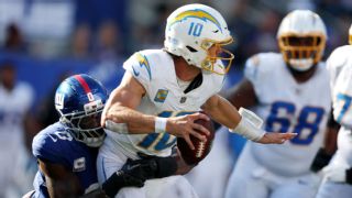 Ranking fantasy losers of Week 4 1. Justin Herbert, QB; Ladd McConkey, WR, Los Angeles Chargers: In the upset loss to the Giants, Herbert had a season-low 12.52 points, completing only 56% of his passes, while he threw two interceptions versus a New York defense that created pressure. McConkey caught one of six targets for 11 yards (2.1 points), and he has posted double-digit points in only one game this season (Week 1). With the bump in volume for Johnston, plus the presence of Keenan Allen, McConkey's numbers have taken a hit to start the season, and he will continue to slide in the rankings -- despite the pre-season hype. I'll have McConkey as a WR3 for the Week 5 matchup against the Commanders defense. -- Bowen 2. Caleb Williams, QB, Chicago Bears: I had Williams ranked as a mid-tier QB1 for the Week 4 game against the Raiders, but the Chicago offense had too many negative plays here, while they also failed to cash-in on positive field position. Williams did throw for 212 yards and a score, but he also had an interception and finished with only 13 yards rushing. And the 11.18 for Williams were a season low. Williams has two games of 24 or more points this season, but he remains an inconsistent thrower in an offense going through the transition of a new system. Williams will be in my QB2 ranks when the Bears return from the bye in Week 6 versus Washington. -- Bowen 3. Derrick Henry, RB, Baltimore Ravens: For the third straight game, Henry failed to post double-digit numbers, as he finished with 7.8 points in Sunday's loss to the Chiefs. Henry saw only eight carries in this game, rushing for 42 yards, plus he added two receptions for 16 yards. Henry isn't carrying the offense at this point of the season, and with Lamar Jackson leaving the game with a hamstring injury, things could get really rough for this Ravens unit moving forward. Let's monitor the injury reports on Jackson this week, as his availability will determine Henry's ceiling for the Week 5 matchup versus the Houston defense. -- Bowen 4. Brock Bowers, TE, Las Vegas Raiders: His struggles continued in Week 4, resulting in only 9.6 PPR fantasy points, the third straight week he was held beneath 10, on six targets. Geno Smith's struggles have played a part, as his struggles with the deep ball are reining in Bowers' production in a way that wasn't the case in 2024. Bowers is still seeing a good amount of targets, his 22% rate fourth-best among tight ends, so there's hope he should rebound soon to remain one of the top three at his position by season's end. -- Cockcroft 5. Geno Smith, QB, Las Vegas Raiders: A popular streaming option due to the matchup against the Chicago Bears -- he was started in a season-high 21.9% of ESPN leagues -- Smith flopped, scoring only 9.78 fantasy points in large part due to his throwing three interceptions. He struggled particularly on deeper throws, as all three picks came on throws at least 10 yards downfield, giving him a league-leading seven now in those situations. Fantasy managers will be much less likely to trust him when the matchups are right. -- Cockcroft 6. A.J. Brown and DeVonta Smith, WR, Philadelphia Eagles: They were remarkably quiet in Week 4, scoring 2.7 and 4.9 PPR fantasy points, and each has now been held beneath five points in two of four games so far this season. Just as was the case last year, the Eagles' running game is humming behind Saquon Barkley and Jalen Hurts, minimizing the need to rely heavily on the team's top two wide receivers. Thus far, the Eagles have run 123 offensive plays with a lead, and a whopping 61% of them have been rushing plays. -- Cockcroft 7. Trey Benson, RB, Arizona Cardinals: With Benson assuming the lead role in Arizona for an injured James Conner, we expected a little bit more in the Thursday night game versus Seattle, right? Benson did manage to post 10.4 points, thanks to bringing in five receptions, but he totaled just 19 yards in the pass game, while he carried the ball eight times for 35 yards. I'll keep Benson in my lower-tier RB2 ranks due to the positive Week 5 matchup versus the Titans defense, but I'm not sold yet. -- Bowen