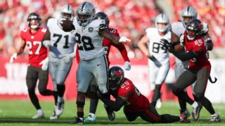 Sincere McCormick, Las Vegas Raiders (32.6%): McCormick entered Monday night's game against the Falcons on an upward trend, with increases in snaps, carries, and rushing yards since his Week 12 debut after spending years on the practice squad and IR. Even with Alexander Mattison back, head coach Antonio Pierce named McCormick the starter, and he played on 14 of the Raiders' first 17 snaps against the Falcons, stockpiling seven carries and two receptions. Unfortunately, he suffered an ankle injury in the second quarter and was ruled out after halftime. If the injury is minor, McCormick has league-winning potential with favorable matchups against the Jaguars, Saints, and Chargers still ahead of him.