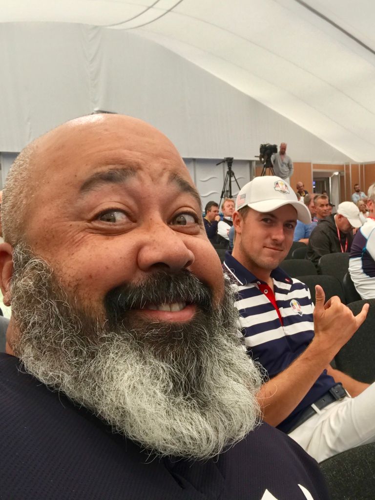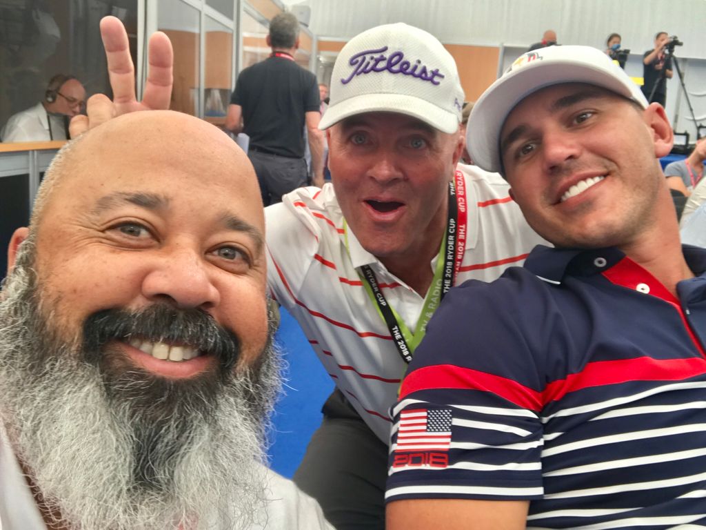 Look how former tour pro and current French journalist Thomas Levet tries to come between the U.S.A. vibe Brooks Koepka and I have going! We win!!