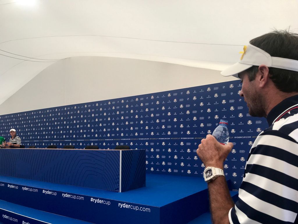 "I'm gonna use bigger words." Spieth to Bubba. "Did you graduate college?" Bubba retorts. "Did you?" asks Jordan. "Yeah, I did. Went back when I was putting bad, just in case." Bubba's got him. "I didn't know that." Spieth concedes. U.S. team smack talk, Bubba 1 - Spieth 0!!