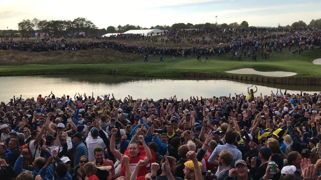 Tyrrell Hatton was heading down the 15th, still in his game with Patrick Reed, already fighting back the tears. Garcia was on the 17th and soon closed out his match with Rickie Fowler and burst into floods. Then Henrik Stenson cracked out the champagne, the songs started and Tommy Fleetwood was lifted onto the shoulders of supporters. Fleetwood then got on a golf cart, drove around a bit, got bored of that -- adrenaline overflowing -- and dove straight into the crowd.