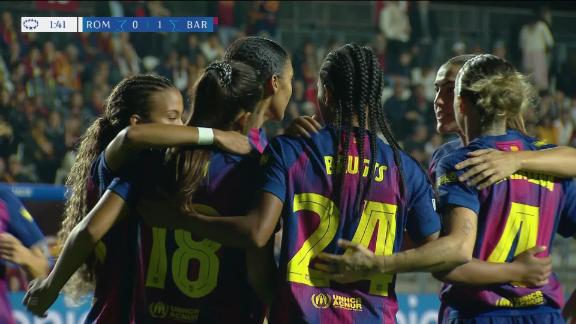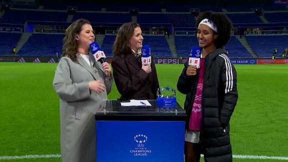 Jule Brand scores after brilliant team play to put OL Lyonnes 1-0 up vs. St. Polten in the Women's Champions League.