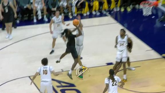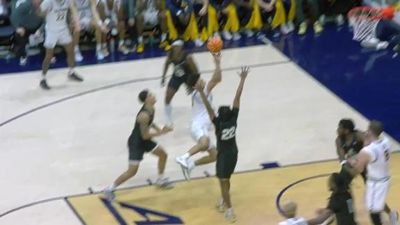 Justin Moore nails the 3 vs. Mercyhurst Lakers