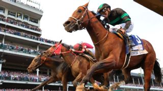 LOUISVILLE, Ky. -- The second jewel of horse racing's Triple Crown could be missing 150th Kentucky Derby winner Mystik Dan and other co-stars, quashing hopes for a rematch after the thrilling three-way photo finish in the milestone race. Trainer Kenny McPeek and the horse's ownership wouldn't commit to whether the colt would race in the 149th Preakness on May 18 in Baltimore, which requires a quick two-week turnaround. Mystik Dan will travel to Saratoga, New York, before they decide whether to enter him in the 1 3/16-mile Preakness. "We're not committed to the Preakness, not yet," McPeek said Sunday morning outside his barn on Churchill Downs' back side. "I ran him back once in two weeks, and it completely backfired on me. ... So we'll just watch him over the next week. It'll be one of those [situations] where we'll probably take it up to the last minute. "We'll let him tell us." Saratoga Race Course, the picturesque track in upstate New York, will host the Triple Crown's final jewel for the next three years while Belmont Park is being reconstructed. The Belmont has also been shortened to 1ΒΌ miles, matching the distance in the Derby that Mystik Dan won by a nose over Sierra Leone and Japan-bred Forever Young in the closest three-way finish since 1947. The five-week gap follows a more normal race schedule for many thoroughbreds, and some trainers might opt to head to Saratoga to acclimate horses sooner. Trainer Chad Brown said Sierra Leone will skip the Preakness and leave Monday to train at Saratoga and run the Belmont. Considering how much it took for Sierra Leone to navigate other horses and chase down Mystik Dan before falling a nose short at the wire, rest sounds necessary. "He's a real laid-back horse but, when we brought him out, was a little more tired than he normally is after his races," Brown said. "I think giving him the five weeks to the Belmont is definitely the right thing to do."  Louisville-born trainer Brad Cox is watching Catching Freedom (fourth) and Just A Touch (20th) before deciding their next steps. Forever Young and fellow Japan-bred T O Password (fifth) will head home Tuesday. That could leave the Preakness without some Derby star power at first glance, though it won't lack for plotlines with a number of well-rested horses expected to compete at Pimlico Race Course. Hall of Fame trainer Bob Baffert could have two entrants as he seeks to follow up National Treasure's victory there last spring. He trains Santa Anita Derby runner-up Imagination and Arkansas Derby winner Muth, who missed the Derby after failed legal attempts by owner Amr Zedan to get him in despite Baffert's suspension by Churchill Downs through the end of 2024. As McPeek and Mystik Dan's owners ponder a decision, he and jockey Brian Hernandez Jr. basked in a wash of congratulations for a Derby victory that put them in exclusive company. Saturday's win helped both claim rare weekend sweeps of the Derby and the Kentucky Oaks for fillies. McPeek is just the third trainer to do that and the first since Ben Jones (who did it twice) in 1952, while Hernandez is the eighth rider to achieve the feat and the first since Hall of Famer and fellow Louisiana native Calvin Borel in 2009. Mystik Dan stood unfazed as a cluster of onlookers took photos and selfies while workers bathed him outside the barn. He was then draped with the winner's blanket before being led back to his stall with a WWE-style title belt lying on an outer wall. Oaks-winning filly Thorpedo Anna also made a brief appearance and soaked in the attention. Hernandez is preparing for his own life-changing spotlight after claiming the sport's marquee race. He dined with his family after the Derby but didn't sleep much, a routine that figures to go on for the next few days amid a flood of interview requests. At some point he hopes to get his mind around all that has happened, but he already has a response ready. "When somebody asks what my profession is, I'm able to tell them I'm a professional jockey," he said. "And then the first question they normally ask is, 'Have you ever won the Kentucky Derby?' I can say that now."