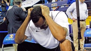 Georgia State coach Ron Hunter fears he may have ruptured his Achilles tendon while celebrating the Panthers' Sun Belt Conference tournament championship. Hunter injured his left leg during the celebration after Georgia State's 38-36 win over Georgia SouthernĀ on Sunday and had to be helped off the court.  Hunter was hugging his son R.J. Hunter, who made the deciding free throws with 21.6 seconds left, and jumping up and down when he suffered the injury. He did return to be with his team as it continued the celebration. The basket had to be lowered so that Ron Hunter could cut the final pieces of the net. "I tore my Achilles on the right side years ago playing basketball," Hunter said. "This was the exact same feeling and I knew when I jumped up ... I knew when I came down that I had done it (again), but instead of stopping right there, I wanted to go celebrate with my team. More importantly I wanted to go celebrate with my son. You don't get many opportunities like that." Hunter used crutches to attend the trophy presentation. "I'm actually embarrassed by this because it takes away from what these kids have done," Hunter said. "The team doctor is here and she said we're probably going to cast it and we'll do everything after the tournament. They wanted me to stay here, but I'm going back with my guys. I'm not staying in New Orleans, I want to be with my guys. "We'll deal with this tomorrow. Nothing is going to keep me from going to the NCAA tournament with my guys and celebrating tonight with them. The pain between 1 and 10 is about 17 but I've taken so many pills I don't know if I'm feeling anything." Kevin Ware, who suffered a severe leg injury during Louisville's run to the 2013 national championship, scored 18 points for Georgia State, the only double-figure scorer in the low-scoring game, while R.J. Hunter finished with nine. "That was one of the best feelings of my life," said Hunter, a junior. "I saw my dad running toward me. ... Then I saw my teammates rush and it was that moment when everything just paid off. You really can't put that into words. It really hasn't hit me yet, but that moment was one of the best of my life." Georgia State will play Baylor in the NCAA tournament. Information from The Associated Press was used in this report.