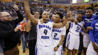 On Wednesday night, Indiana State Sycamore guard Brenton Scott hit the game-winning free throw in his team's 72-71 upset victory over No. 16 Butler on the same day NBA legend Larry Bird, ISU's most famous product, celebrated his 60th birthday. "It was special," Scott told ESPN.com shortly after Indiana State fans stormed the court at the Hulman Center in Terre Haute, Indiana, to celebrate the win. "It's Sycamore history. I'm proud to be a part of it." But his identical twin brother, Fort Wayne star guard Bryson Scott, who finished with 18 points and 12 rebounds in his team's upset of then-No. 3 Indiana on Nov. 22, thinks his performance against the Hoosiers gives him family bragging rights. "Well, I don't know what Butler was ranked," Bryson Scott told ESPN.com, who chuckled as he thought about the question. "What? 16th? Well, Indiana was third. I'll probably get more of the bragging rights. Both are big wins."  Brenton Scott said he's proud of his brother's performance against the Hoosiers, but he expects the Fort Wayne, Indiana, natives to share any holiday rewards from their family. "We'll both probably get a big gift," the Indiana State standout said. There are eerie similarities between their two performances against in-state powerhouses Indiana and Butler. The twins each recorded three assists and made 50 percent of their field goals. Brenton Scott (25 points) finished 9-for-18 against Butler on Wednesday, and Bryson Scott went 8-for-16 in Fort Wayne's win over Indiana last month. Each made six shots inside the arc in his respective upset, too. Brenton Scott said the end of the Butler win did not go as planned. After the guard sank the first of two free throws to give his team a 72-71 advantage with 0.8 second on the game clock, Indiana State coach Greg Lansing told him to miss the free throw. He did, but only by accident. "After I made the first, [Lansing] kinda whispered to miss the second," the Indiana State guard said. "I think I tried to make it. I was trying to make it. I think I fooled everyone." The twins, both juniors, said they weren't surprised by their production in the upsets. "I texted him after that game and told him, 'That's how you play,'" Brenton Scott said of his reaction to his twin's effort against Indiana in November. Added Fort Wayne's Bryson Scott on his brother's performance Wednesday against Butler: "I thought it was great. I thought he put on a show."