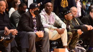 Celeb sightings Spike Lee, the Academy Award-winning filmmaker -- who attended Morehouse College -- with Tamika Tremaglio, the NBPA's newly hired executive director. Tremaglio replaced Michele Roberts in the role last month.  Milwaukee Bucks star and 2021 NBA champion Khris Middleton sitting courtside.  NBA champion and two-time Olympic gold medalist Gary Payton taking in the action.