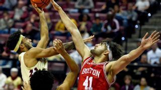 Sukhmail Mathon, Forward, Boston University TerriersWhen you stepped onto campus in 2017, what did you expect to be doing right now? At that time I honestly never expected this. I thought I'd be moving on to the next part of my life, whether that was playing professionally or getting a job. Why'd you stay all five years? A lot of [other schools] were talking to me. A lot of people were transferring. You know, for me it was an easy decision. I'd been here for four years. And I love my teammates. I love my coaches. And we have a great group of guys, and coming back for a fifth year it wasn't a hard decision because Boston University felt like home. A lot of people were transferring and a lot of people were talking in my ear that I could have another opportunity in another place, but at the end of the day I thought this was the best situation for me. What are you going to miss most about your school? Probably just the overall college experience. College is a once-in-a-lifetime thing and I'll probably miss my teammates and all the laughs we've shared. I'm never going to forget the moments that I've had here. What was the hardest thing about being a college student/basketball player over these past five years? A lot of things were difficult [last year]. We didn't start practicing until late. We weren't able to come [to school early to train] in the summer. There were a lot of restrictions: practicing with masks and playing games with masks. It was quite a challenge for us, not being able to have a normal year. We didn't have a nonconference schedule. Going through that, it was definitely difficult. What's next for you? Right now, honestly, I hope to play professional basketball somewhere. I'm really passionate about basketball, but I haven't really thought about that too much. I'm just focused on getting back to the Patriot League championship and getting it done one more time and leaving the program on a high note and trying to be remembered as a winner. Next up for Boston U.: vs. Loyola Maryland in Patriot League tournament, Thursday, 7 p.m. ET