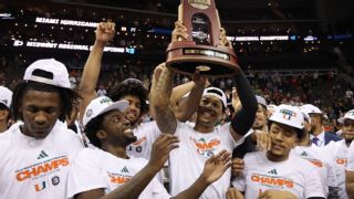 2023-24 NATIONAL PREDICTIONSThe most interesting teamJohn Gasaway: In ways both good and potentially worrying, North Carolina is the pick here. In two seasons under Hubert Davis, the Tar Heels have carried a 15-point lead into halftime at the national championship game one year and missed the tournament entirely the next. What's the true "new normal" for one of the game's most storied programs? Joe Lunardi: Tennessee belongs in the best-golfer-never-to-win-a-major category. The Vols might be the biggest athletic department never to reach a Final Four. In men's basketball that is. Rick Barnes has been consistently excellent since arriving in Knoxville, but unable to get past the Sweet 16, despite multiple top 10 teams on KenPom. This could (should?) be the year that changes. Jeff Borzello: I'll go with FAU. The Owls are ranked in the preseason top 10 after making a run to the Final Four last season and bringing back all five starters. They're also a team that earned a 9-seed and was seconds away from losing in the first round to Memphis. Do they carry over the momentum? Or do they struggle with a target on their backs in a tougher league (moving from Conference USA to the AAC)? Myron Medcalf: It has to be the team in Lexington led by the guy with a national championship ring and a $33 million buyout. The relationship between John Calipari and Kentucky will be one of the biggest stories in college basketball this season. With the return of Antonio Reeves and a top-ranked recruiting class, he has the players to win big. But it has also been nearly a decade since he reached the Final Four. Kentucky will be this year's Netflix drama either way.  The mystery team that will either be a bracket disruptor or a tournament disasterGasaway: Can we just pencil in Miami here every season? Last year, the Hurricanes closed the regular season with two games at home in which they lost to Florida State and barely beat Pitt. Then Jim Larrañaga's group went to the Final Four as a No. 5 seed. Now pollsters have UM at No. 13, but laptops are warning us to stay far away from this team. Mysterious! Borzello: I have zero idea what to think about UCLA. On the one hand, the Bruins have Mick Cronin, a couple of potential one-and-done freshmen and they bring back Adem Bona on the interior. But there's hardly any other returning production on the roster, and their best freshmen are coming from overseas, so they will need time to adapt. They could fall anywhere from a second weekend team or barely make the tournament, and I wouldn't be surprised. Medcalf: This honor belongs to the Maryland Terrapins. With the return of Jahmir Young, Julian Reese and Donta Scott and the addition of a strong recruiting class, Big Ten title contention and a second weekend run both seem possible for the Terps. But, this program has started 1-3 or worse in Big Ten play for the past three years and hasn't been to the Sweet 16 since 2016. Kevin Willard could change all of that this season, but I'll have to see it to believe it. Lunardi: Let's make it a mystery conference, perhaps even one you've heard of. The Big Ten has collected a whopping 26 NCAA tournament bids the past three years and produced exactly Z-E-R-O teams in the Final Four. That should be impossible, considering 10 of those 26 were top-four seeds in their region. I call that disruption quite disastrous.  The first top 25 team to exit the NCAA tournamentMedcalf: I'll pick UConn. Why? Recent champs have had rough outings the year after their title runs (or two years later, in Virginia's case, since we didn't have a 2020 national championship). Duke's 2015-16 squad was the last national champion to reach the second weekend in the next NCAA tournament. How wild is that? The Huskies could get caught in a similar title hangover. Lunardi: Gonzaga hasn't lost a first-round NCAA tournament game in 15 years, since a guy named Stephen Curry knocked the Bulldogs out. Mark Few is 14-0 in tourney openers since then and 20-3 overall during the Zags' incredible run. Bracketology loves the Zags, but even the best dealers bust occasionally. Gasaway: It's not just UNC last year. History suggests making the preseason top 25 is no guarantee of reaching the tournament. Can we really be certain that, for example, Florida Atlantic will hear its name called next March? The Owls may pick up more losses (four or five?) in this year's new-look American than they did in last year's Conference USA (two). Borzello: I don't want to take the easy way out and just pick No. 25 Illinois. So, going out on more of a limb, I'll go with Texas. The Longhorns' success this season will come down to Max Abmas. Arguably the nation's best scorer over the past three seasons, how will his production translate to the Big 12? If he's not putting up huge scoring numbers, I question how dynamic this team will be offensively.  A non-Power 5 school we'll all be rooting forMedcalf: It has to be Florida Atlantic, right? It is the anti-transfer portal team. All of those talented players had opportunities to play for other schools after their Final Four run but instead returned to Boca Raton to chase a national championship. I remember the way the world latched onto Butler a year after Gordon Hayward's shot clanked off the rim in the national title game against Duke. I think the Owls could enjoy similar fanfare, even though they're in a league that's in a higher tier. Borzello: Finally, Merrimack is eligible for the NCAA tournament. The Warriors haven't been allowed to go dancing since they were in the midst of their mandatory four-year transition from Division II to Division I, but look at what Joe Gallo has done in those four years: NEC regular-season titles in 2020 and 2023, NEC conference tournament title in 2023. It would be fitting if they get to the NCAA tournament in their first eligible season. Gasaway: Move over, Syracuse. There's a new game in town, literally. Le Moyne is also located in Syracuse, New York, and this marks 