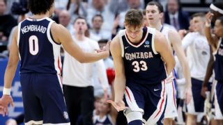 MIDWEST REGION: No. 5 Gonzaga 89, No. 4 Kansas 68Just how good is Gonzaga? This much is known: the Bulldogs turned it up at exactly the right time. They put together a 23-4 run over a 7-minute stretch in the second half to pull away, using their size and deft shooting -- they shot 53.3% from 3 -- to put the game out of reach for Kansas. The Zags' ability to put a combination of 6-foot-9 Graham Ike, 6-10 Ben Gregg and 6-10 Braden Huff on the court together at any given time, complimented by 6-8 senior forward Anton Watson, can make the Zags a tough matchup down the stretch in March. Do they have what it takes to make a second Final Four in four seasons? That's yet to be seen, but they're playing some of their best ball when it matters most. What the win means for Gonzaga: The Bulldogs are back in the Sweet 16 for a ninth straight season, tying Duke for the second-longest streak in NCAA tournament history. They'll face the winner of Purdue and Utah State in Detroit next weekend, with a spot in the Elite Eight on the line. In a season that started with the Zags ranked 11th in the preseason AP top 25, they put on a clinic Saturday, dismantling Kansas for an easy second-round win. What the loss means for Kansas: For a second straight year, the Jayhawks went home after their second game of the tournament, capping an underwhelming season. Before Feb. 17, the Jayhawks had just six losses. Since Feb. 17, they haven't been able to figure things out, and it cost them Saturday. A 23-11 season ended with a 2-5 stretch. With three seniors in the starting lineup, Kansas will begin the process of regrouping for next season. -- Josh Weinfuss Making history: The Zags are in select company. Since the field expanded to 64 teams in 1985, reaching nine consecutive Sweet 16s has happened just three times: North Carolina advanced to nine straight regional semifinals from 1985 to 1993. Duke did the same between 1998 and 2006. And now Gonzaga. Any true Tar Heel will tell you UNC actually made an incredible 13 straight Sweet 16 appearances between 1981 and 1993. That is correct, and prior to 1985 those fields were smaller. In each year from 1981 through 1984, Dean Smith's team arrived in the regional semifinals after winning one game. -- John Gasaway