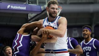FORT WORTH, Texas -- Kansas big man Hunter Dickinson grabbed an offensive rebound and had the ball cradled into his body with both arms, with no intention of letting TCU take it away from him. Coach Bill Self wasn't pleased with how that play ended for his preseason AP All-American center, who never gave in as Trazarien White tried to wrestle the ball away -- even after officials blew the whistle in the second half of the 12th-ranked Jayhawks' 74-61 win Wednesday night. "I thought it was asinine that our guy would hang onto the ball like that," Self said. The 7-foot-2 Dickinson and 6-6 White remained tangled even while stumbling out of bounds as whistles blew to stop the action. TCU guard Vasean Allette and freshman Malick Diallo also reached for the ball. Once Dickinson finally gave up the ball, officials reviewed the play and issued technical fouls to him and White. "That was a bonehead play. But what made it a bonehead play as much as anything ... when the whistle blows, you stop. And I'm sure they blew it several times," Self said. "Cost us a possession, so yeah, I wasn't happy to see that at all." The Horned Frogs had possession after the tie-up and White responded with an alley-oop dunk on a pass from Noah Reynolds with 12:44 left to put them up 48-47. That was the last time they led.  Dickinson, who finished with a team-high 16 points and nine rebounds, wasn't one of the players who Kansas brought into the postgame interview. TCU coach Jamie Dixon, who was at the opposite end of the court from where the players got tangled up, had a much different reaction to the play than Self. "It was unimportant, I guess," said Dixon, who didn't think there was anything dirty or vicious about the play. "I don't even know what the T's were for, but I guess the officials told them to stop. They didn't do what they were told to do by the officials."