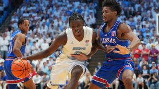 CHAPEL HILL, N.C. -- North Carolina was hurtling toward yet another loss to fellow blueblood Kansas, down after a shaky half marked by turnovers and stagnant offense. Charging out of the second half with rousing energy and an edge changed everything, both for Friday night's game and in validating coach Hubert Davis' retooling of the roster after the Tar Heels barely made last season's NCAA tournament. By the end, the 25th-ranked Tar Heels had rolled to an 87-74 win against the 19th-ranked Jayhawks behind contributions from a star freshman, a transfer portal big man and a returning senior, who took on the toughest defensive assignment against Kansas star freshman Darryn Peterson. Trailing by 10 points in the first half and 37-29 at the break, North Carolina shot 24-of-36 (66.7%) while scoring 58 second-half points against Bill Self's Jayhawks. "It validates [Davis'] thoughts and the vision that he had," said Seth Trimble, who had 13 of his 17 points after halftime while leading the defensive effort against Peterson. "It takes some early stress off of him, getting a big win like that. And it gives not only him, but this whole team a bunch of confidence going into the rest of the season." This was the kind of game that had been getting away from the Tar Heels far too often of late. North Carolina lost eight of nine against AP Top 25 teams last season, including one at Kansas in which the Jayhawks blew a 20-point lead but hung on down the stretch. Getting an opening-week win against Kansas, with fans participating in a whiteout largely triggered by a social media post from star freshman Caleb Wilson, was quite a change. It was North Carolina's first win against Kansas since November 2002, when Matt Doherty was coaching against Jayhawks coach Roy Williams -- before Williams returned to his alma mater to take over the Tar Heels the following season. The Jayhawks had won five straight meetings in the series between programs with a combined 10 NCAA titles. That run included the 2022 national championship game in Davis' first season, the 2012 NCAA Elite Eight and the 2008 Final Four that Kansas famously led 40-12. "I wanted this new team, this new group, to have evidence of what it's like to play in a game like this in the Smith Center and to come up big," Davis said. "I just wanted them to have a taste of what it's like to be here."  Wilson, a versatile 6-foot-10 forward who joined Peterson in giving this game a pair of potential one-and-done NBA freshmen, finished with 24 points, 7 rebounds, 4 assists and 4 steals in a strong start-to-finish show. That included showing off a soft touch on multiple fading turnarounds and maintaining his exuberant energy, from diving on the floor to marking the final seconds of the win by motioning to the crowd for noise. "I want to impress my coach. I want to impress the world," Wilson said. "I want to let the world know who I am for sure." Henri Veesaar, a 7-foot Arizona transfer, dunked a feed from Kyan Evans and then dunked a missed 3 from Wilson to start North Carolina's second-half surge. Veesaar finished with 20 points and outplayed Kansas big man Flory Bidunga (8 points). And there was Trimble, the 6-3 fourth-year returnee who went from nonfactor in the first half to catalyst as North Carolina took control of the second-half tempo. He had back-to-back push-the-tempo scores, which had Self first waving his hands in frustration and then burning a quick timeout barely two minutes in. But Self pointed to Trimble's defensive effort on Peterson, who had 22 points on 8-for-14 shooting. And Davis noted that Trimble held up after the team tweaked its defensive plan to stop switching, leaving perimeter players largely on their own. "He blanketed Darryn in a way that, to me, was terrific," Self said. "Caleb was the best player probably in the game. But you can make a strong case for Henri and for Seth too. "The way that [Trimble] guarded Darryn and playing on top of everything, even though Darryn got off 14 shots, that was a situation that he probably needed to get off 20 or 22 [to win]." Davis arrived for his postgame news conference in warmup gear rather than his traditional sideline look of sportscoat and slacks. He had to change after the players soaked him with a celebratory dousing of water in the locker room. "I won't remember the score, but I'll remember them jumping around in the locker room," Davis said. "I'll remember the smiles on their faces."