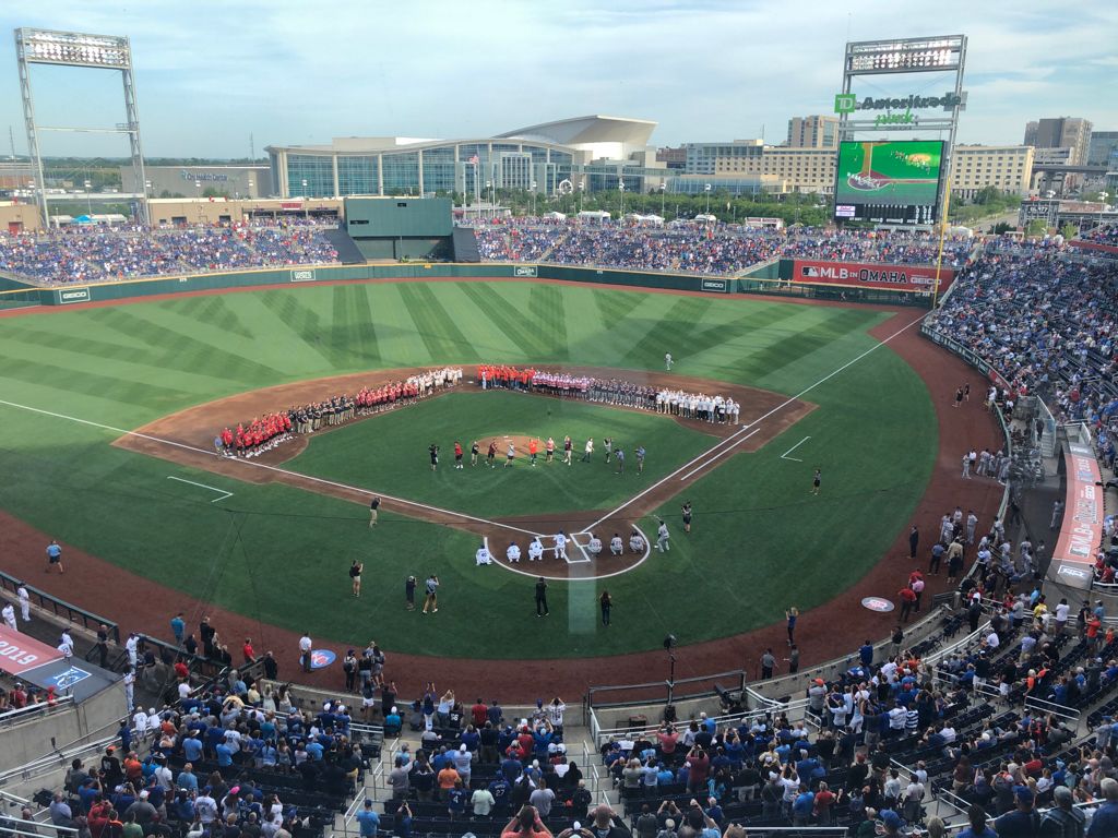 Given the success of the first "MLB in Omaha" game, it's also worth considering the idea of moving a Royals game to the city as a CWS launch event every season. The demand is clearly there and it makes for an ideal kick-off event for days to come. In addition to the teams gathering on the infield during pregame and participating in first-pitch ceremonies, Oregon State's Adley Rutschman was on hand to accept the Golden Spikes Award as the best player in the country. Rutschman was recently selected first overall in the draft by the Baltimore Orioles. Tying all of this together annually seems like a slam dunk.