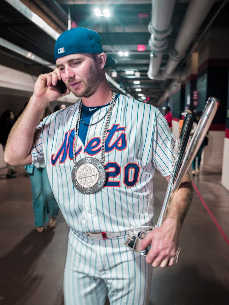Daddy Yankee came onto the field after Pete Alonso won the Home Run Derby and gave him a comically large chain reading "DERBY CHAMP"