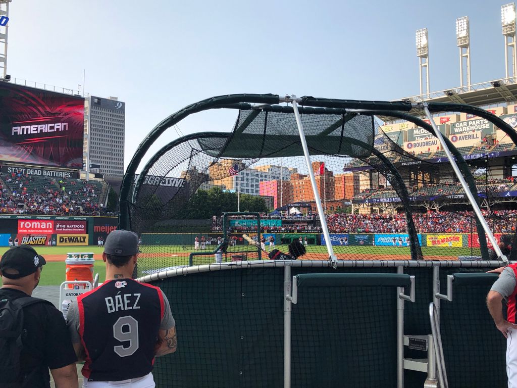 Mike Trout is in the cage taking swings as All-Star batting practice begins in Cleveland.
