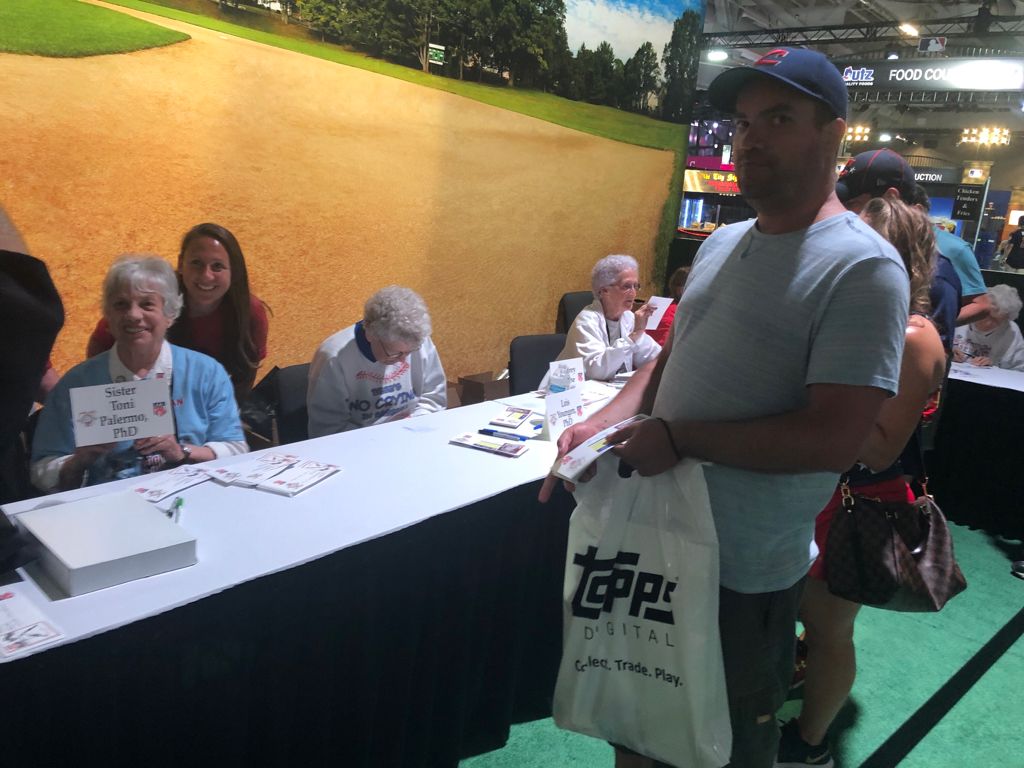 There is a long line at Fan Fest for autographs and photos with six former players from the All-American Girls Professional Baseball League, which inspired the movie ‘A League Of Their Own.'