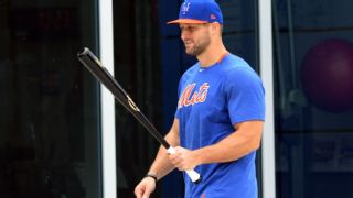PORT ST. LUCIE, Fla. -- Be it on a Triple-A field in Syracuse or a tennis court in South Asia, Tim Tebow is still working, hoping for a shot at the majors. Now 32, the former celebrated quarterback is back for his fifth year as a minor league outfielder for the New York Mets. A two-time national champion at Florida who won the Heisman Trophy and later a playoff-winning QB for the Denver Broncos, Tebow was contacted by the XFL in its return to football action this season. He said he loves the opportunity the league is giving to players who will eventually, he feels, make an NFL roster. "But for me, this is what I wanted to do and pursue it and be all-in. When I'm 50, I can't come back and do this," Tebow said Sunday at the Mets' spring training complex. "This is part of a season and a time, and I feel I'm in that season. I don't know when I'll feel like I'm out." Tebow's steady dedication has resulted in some odd workout locations, including one in the Maldives last month with his wife, Demi-Leigh Nel-Peters, a South African who was crowned Miss Universe in 2017. The couple wedded on Jan. 20 in Franschhoek, South Africa, and honeymooned and participated in Tebow's Night to Shine program internationally. While in Maldives on his honeymoon, Tebow got in some baseball work. "(The Maldives) doesn't have baseball cages there, but they do have a really sweet tennis court. I was able to get soft-toss against the back of the tennis net," said Tebow, who sent footage out on social media. "People were like, 'Dude, just stop.'" "Our trip was so fast in the Vatican that I was thinking, 'It would be kind of cool if I ran up the Vatican steps like Rocky,' but I didn't," he said, laughing. For the second consecutive year, his season ended with an injury in July. In 2018 it was surgery on the hamate bone in his right hand. Last season he attempted to field a ball hit to him with his bare left hand, resulting in eight stitches and the end of another campaign. "I didn't even know it. I picked the ball up and was like, 'Yes, we held the guy at third.' I glanced at my hand and saw blood going everywhere. That was frustrating. It's just random, fluke things," he said.  Tebow hit .163 with four home runs and 19 RBI in 77 games last year in his first Triple-A action. While Tebow is eager to improve, infielder Jed Lowrie wants a return to his former All-Star form. Lowrie is wearing a brace on his left leg and said it gives him the best opportunity to play one of his multiple positions as a utility infielder. "I'm just excited to be here and get back out on the field with the guys," the 35-year-old Lowrie said. "We'll just take it day-by-day." The versatile Lowrie was signed after the 2018 season and had a disappointing campaign from the start. He opened 2019 with by experiencing pain in the back of his left leg as he ramped up his workout, and the ailment persisted throughout spring training. The 2018 All-Star was sidelined the remainder of the Grapefruit League and the first 140 games of the regular season. On Sept. 7 at home against Philadelphia, he struck out against Drew Smyly in the Mets' 5-0 loss -- his first plate appearance with the Mets. Lowrie, who begins the final season of a $20 million, two-year deal signed in free agency, had just seven at-bats as a pinch-hitter and never played the field. He began his physical therapy once the season ended -- getting back into his "good routine," he said. Lowrie said he "absolutely" expects to participate Monday when the club's first full-squad workout takes occurs. Game notes