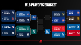The 2025 MLB playoffs are underway! For the fourth year, a 12-team playoff field was whittled down in the wild-card round to an eight-team division series. In the American League, the Toronto Blue Jays became the first team to secure a spot in the championship series by knocking out the New York Yankees. They'll next meet the Seattle Mariners, who defeated the Detroit Tigers in a thrilling five-game set. In the National League, the defending champion Los Angeles Dodgers dropped the Philadelphia Phillies to advance to the NLCS, while the Chicago Cubs and Milwaukee Brewers are facing off in a battle of NL Central rivals. From the next playoff pitch to the last out of the World Series, we've got you covered with the postseason bracket, schedules, results and how to watch every game this October.   Latest news and analysisBest World Series matchups for every type of fan Offseason questions for eliminated teams Teams with chance to end lengthy playoff droughts MLB playoffs preview: World Series odds, likely MVPs and fatal flaws Our 2025 MLB postseason predictions Passan: The October without a superteam  American League Division SeriesBest-of-five series All times ET for every matchup and round