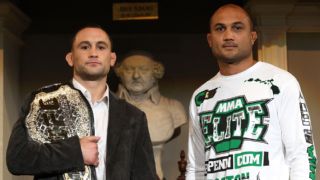 The Trilogy The first fight with Gray Maynard was the first loss of my career, and that was tough to take. It was 2008 and this was my first fight as a full-time fighter. Up until then, I was still working as a plumber. But even though I was now fully devoting myself to MMA, I was a young fighter and didn't know how to use my training time well. I didn't belong to a gym and was just bouncing around, getting in training wherever and whenever I could. I remember thinking, man, this is not how a professional athlete should be preparing for a fight. So after the loss I sought out Ricardo Almeida as jiu-jitsu coach, and having his gym as my training home from then on was a huge, huge asset for my career. Almost three years later, after I had won the title, Gray and I fought again. It didn't start well for me. And honestly, I don't remember much more than that about the fight. At some point in the middle rounds, I became aware of a lot of pain in my ankle and I didn't know why. It wasn't until afterward that I was told that when I got dropped in the first round it looked like I sprained the ankle pretty badly. The one vivid memory I have from the fight is being in my corner between rounds and my coaches telling me there was one round left, and me thinking, "Jeez, just one more round? What happened to Rounds 2, 3 and 4?" Even though the fight ended up as a draw, not a win, I was proud of myself. I went through a lot to make it to the finish line. Still, it's not like I go back and watch the fight -- I'll save that for something to do with the grandkids. I just chalk it up as a testament to my toughness. I faced another test of my toughness in the third Maynard fight. Another bad start, another comeback. And when I knocked him out in the fourth round, I remember losing my mind. I jumped up on the cage and kissed the TV camera, getting blood all over the lens. I was screaming, flexing -- that's not really my style, but emotions take over. In those moments, you don't know what you're doing. Other than winning the belt, this was the favorite moment of my career. Those three fights will connect me and Gray forever. When I'm in Vegas, I usually stop at Xtreme Couture and sometimes I'll see him. He and I took a photo together at last year's wrestling nationals. It's all love. When you share a cage for, what, almost 12 rounds, you develop a bond.