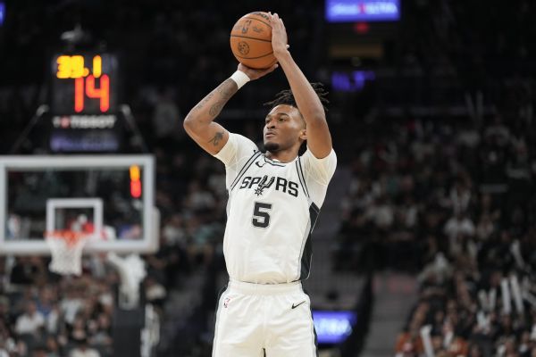 Spurs second-year guard Stephon Castle is dealing with a hip flexor strain and will be reevaluated in 1 to 2 weeks, sources tell ESPN's Shams Charania.