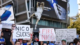 TWO WEEKS LATER, before Game 4 of the NBA Finals, Dumont conducted the only news conference he has held since the ownership transfer. He was flanked by Harrison and then-Mavs CEO Cynt Marshall. "Normally when teams change ownership, they bring their own people in," Harrison said. "Patrick and the Adelson family, they've adopted me as their own, so I really appreciate that. One of the things about Patrick and I, our conversations, we talk about leadership. We talk about investing in the community. We talk about culture. It's all the things that I believe in. It reminds me of my old days at Nike. "I guess that's his corporate background." He turned his head toward Dumont. Their eyes locked as big smiles broke out on their faces. "Sounds great," Dumont said, grinning from ear to ear. Unlike his predecessor, Dumont doesn't bask in the glare of the public spotlight. Cuban soaked up the fame that came with NBA ownership, parlaying his image as a bombastic businessman into a long-running role on ABC's Shark Tank that elevated his celebrity far beyond the sports world. By stark contrast, a Google search produced only one photograph of Dumont when news broke of the Mavs' sale. The corporate world is the comfort zone for Dumont, who received an MBA from Columbia Business School before beginning his career in investment banking more than a quarter century ago. He has climbed the corporate ladder since joining Las Vegas Sands following his 2009 marriage to Sivan Ochshorn, the daughter of the corporation's owners Miriam and (since deceased) stepfather Sheldon Adelson, becoming the president and chief operating officer in 2021. Harrison, who rose from field representative to vice president of North American basketball operations during his two decades at Nike, prioritized developing a relationship with Dumont after the franchise was purchased. Harrison connected with his new boss by speaking a corporate language of sorts, emphasizing the importance of establishing a clear chain of command by reporting directly to Dumont instead of through Cuban, which he had done for the previous two seasons. Harrison and Cuban both declined to comment for this story. "Nico basically said, 'Dude, I don't want to deal with Mark anymore. He's too much,'" one team source said. With a new direct line to his boss, and his former one out of the picture, Harrison accelerated the ice-out. Harrison had once told Cuban that he was nicknamed "The Silent Assassin" at Nike because of his ability to quietly maneuver to get his way in business matters. Suddenly, Cuban believed that he was in Harrison's crosshairs. "Immediately after the sale, Nico started really playing Dumont," another team source said. "He honed in. Then we went to the Finals, and Nico could do no wrong." Cuban blamed Harrison, not Dumont, for his basketball exile, according to sources familiar with the dynamic. As Harrison's power rose, Cuban privately claimed that the league office required the parties to remove a clause in the purchase agreement that ensured him the right to be invited and attend all basketball operations meetings, sources said. That clause, however, made no mention of Cuban having any authority over basketball operations. In Cuban's mind, according to a source, he would have maintained control essentially because he would have been the smartest, most experienced man in the room. "That's the most obvious instance of having my cake and eating it, too," a source involved in the process said. "How long have you known Mark Cuban? Did that seem out of character?" As far as Cuban was concerned, according to sources familiar with his thinking, Harrison wasn't qualified to be the primary decision-maker for the team's basketball operations, despite hiring him in June 2021 to be the team's GM after the contentious firing of longtime Mavs president of basketball operations Donnie Nelson. Even so, Cuban privately insisted that he never intended to give Harrison autonomy and hired him with the hopes that his relationships with players and agents would help the Mavs reverse their long-running trend of finishing as runners-up in free agency. Cuban hired former Utah Jazz general manager Dennis Lindsey as a senior advisor in summer 2023 -- a move suggested by Doncic's agent Bill Duffy and business manager Lara Beth Seager -- to help mask Harrison's perceived shortcomings as an inexperienced NBA executive. Harrison blamed Cuban for what he believed were the Mavs' biggest personnel mistakes during his tenure, which came in summer 2022: allowing Jalen Brunson to get away in free agency and trading for Christian Wood, a player Kidd didn't want to coach and resented having on the roster. Several members of the coaching staff and front office also faulted Cuban for those moves. Harrison was adamant in talks with Dumont that the basketball operations department would function much better without Cuban's constant interference, sources said. Dumont believed he had proof of concept after the Mavs' 2023-24 season took off following trade-deadline deals to acquire Daniel Gafford and P.J. Washington, albeit only after the Washington Wizards allowed Kyle Kuzma to veto a deal in which Dallas would have given up a pair of first-round picks for him, forcing the Mavericks to pivot to other targets. Dallas was 28-23 and in eighth place in the West -- two games out of fifth -- when Harrison's new additions joined the team. The Mavs had the league's best record (16-4) and top-ranked defense in the final 20 games of the regular season before their run through the West as a No. 5 seed. That was all the ammunition Harrison needed to convince Dumont of his prowess as a personnel decision-maker. "Nico did a hell of a sales job," a Mavs official said. "He took credit for everything that was done. When Patrick asked questions -- asked how we got Kyrie, how the draft happened, etc. -- [Harrison] said he was the guy. We got on a roll and went to the Finals. Fool's gold." Dumont would occasi