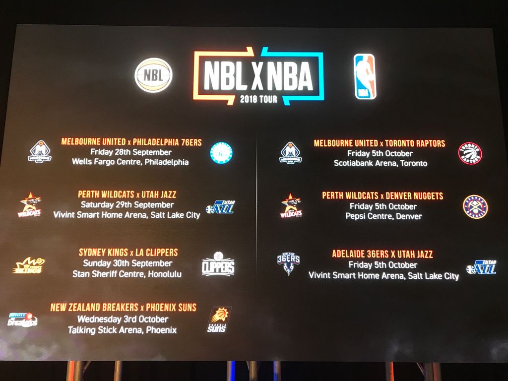 The 2018 tour will kick-off in Philadelphia with reigning NBL champions Melbourne going up against Aussie Ben Simmons -- the NBA's recently crowned Rookie of the Year -- and the 76ers. United will also play this year's No. 1 Eastern Conference seed Toronto Raptors later in the tour. Meanwhile, Gaze's Kings will be in action in Honolulu with a game against the LA Clippers.