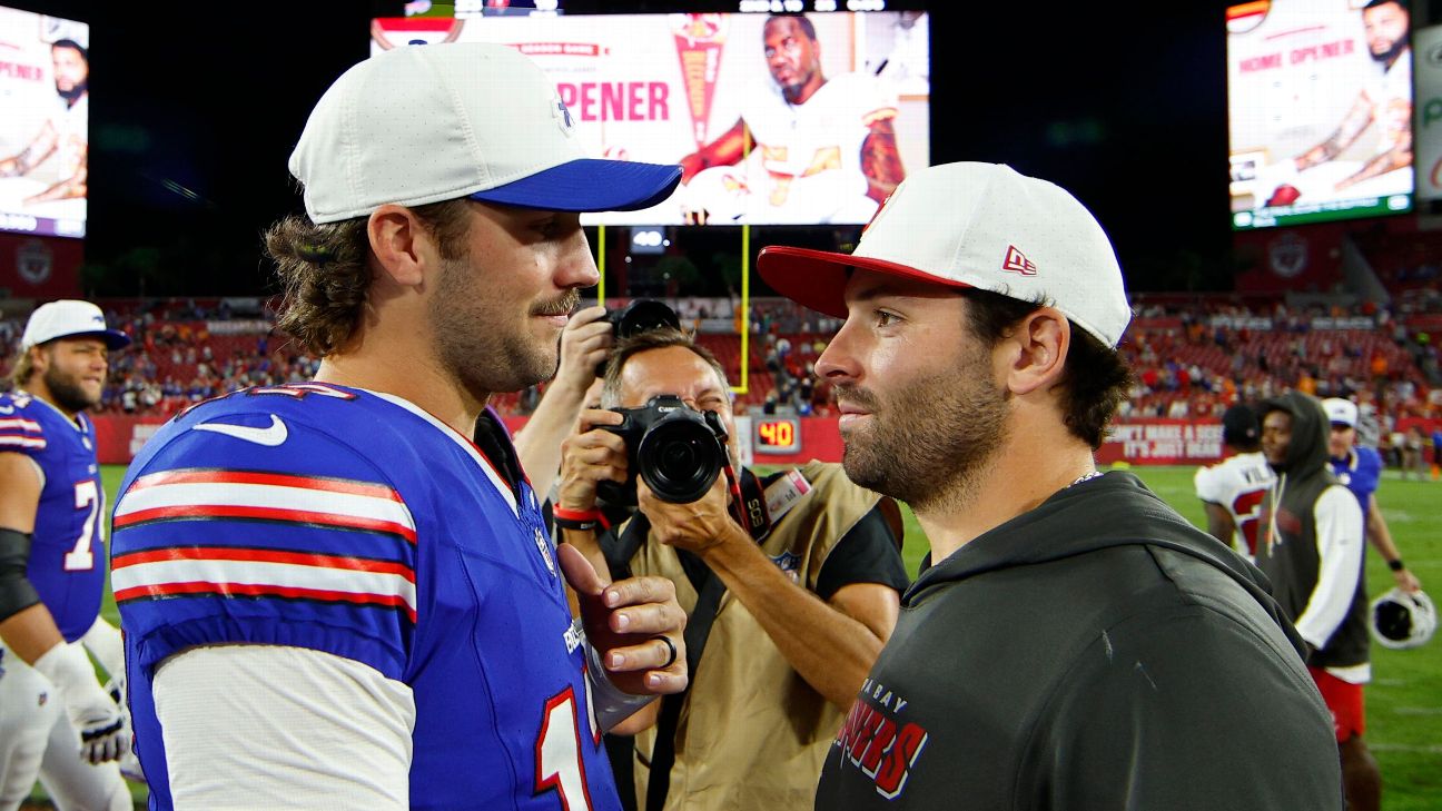 'His hands are small': QBs Josh Allen, Baker Mayfield trade jokes ahead of Bucs-Bills