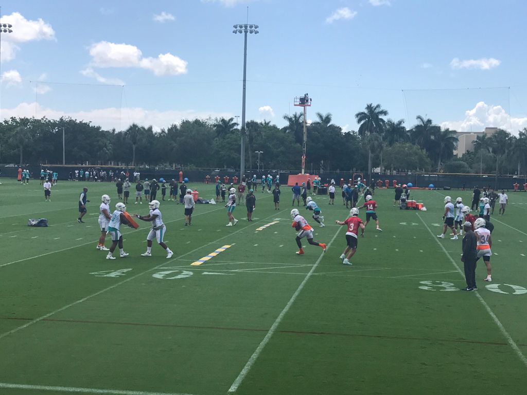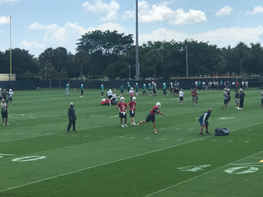 Ryan Fitzpatrick opened mandatory minicamp Tuesday taking first-team reps and he once again looked like the most consistent & best QB on the field. Fitzpatrick dominated in red zone drills and showed command of the offense. Josh Rosen had some highlight moments, particularly on some sideline throws, but he also had bouts with inconsistency and threw a pick-six in the red zone. The Dolphins QB battle is just heating up, and it should get more intense in training camp as pads come on and Rosen has a stronger grasp of the offense.