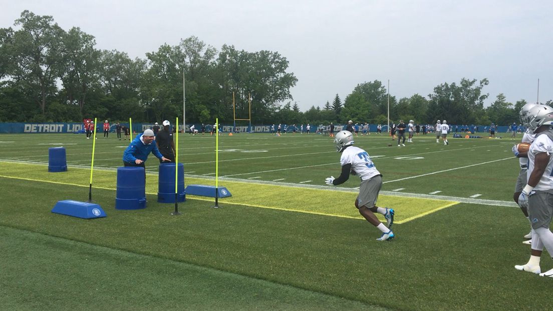 Kerryon Johnson and the rest of the Lions running backs making cuts in practice.