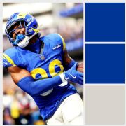 Los Angeles RamsHelmet: Royal/sol Jersey: Royal Pants: Bone