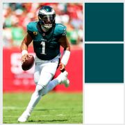Philadelphia EaglesHelmet: Midnight green Jersey: Midnight green Pants: White