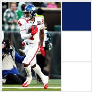 New York GiantsHelmet: Blue Jersey: White Pants: White