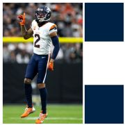 Denver BroncosHelmet: Navy Jersey: Summit white Pants: Navy