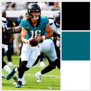 Jacksonville JaguarsHelmet: Black Jersey: Teal Pants: White
