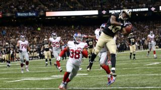 The Giants took a 49-42 lead thanks to a 63-yard interception return by Trumaine McBride. The play was initially ruled a Willie Snead fumble, but the NFL made a correction days later and ruled it an interception. The change wiped out personal records for Brees in completions (40) and yards (511). Brees: That was bogus. That should've been a catch. Harris: At one point, we had caught the interception off the tip. The tip from [Dominique Rodgers-Cromartie]. McBride caught the tip from the interception and scored. I'm like, all right. At this point, we're up now. We're good, right? The other stop didn't come and then we had the penalty. Cooks: We just thought to ourselves, "Well, let's go score some more points." Anytime you got Drew right there and the playmakers that we had, we knew we could, in our mind, that we could have a shootout with anybody. Update: Giants up 49-42 with 7:11 left in the fourth quarter