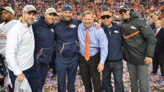 THE BRONCOS' PERSONNEL department eventually eroded, a victim of its own success. After Denver's Super Bowl win to close out the 2015 season, Spytek was hired by the Tampa Bay Buccaneers as their director of player personnel. Lynch and Peters left for San Francisco after the 2016 season. Denver missed the playoffs for eight seasons after the Super Bowl win, and by 2021, Elway had stepped away from running the team's football operations. Mougey remained after current Broncos general manager George Paton was hired in 2021, eventually becoming assistant general manager before he was hired by the Jets earlier this year. While everyone has dispersed across the NFL, they still gather each year at the combine. They carve out an evening at The Whistle Stop Inn in Indianapolis to celebrate Tom Heckert's life. Heckert, a former general manager for the Eagles and Cleveland Browns before he came to the Broncos in 2013 as director of pro personnel, died in 2018 of amyloidosis, a rare blood disorder. "Everybody who knew Heck tells the same stories and laughs the same laughs," Peters said. "And you wouldn't miss it. ... It kind of brings us together and we kind of remember all of the people we were with there." Even as they all look back on their time with the Broncos, there is still the competition of the job. They'd like nothing better than to hoist a Lombardi Trophy before the others do. And then, as Spytek said, "Everybody else can win one after that." Perhaps they'd needle one another in the chat while embracing memories of a cramped second floor, a Hall of Fame legend for a boss and more hope than experience. "I know there are people who say they can sit in a room and tell which of the scouting interns will be a GM someday," Russell said. "I don't think that's possible, but what I will say is possible -- because I saw it with my own eyes in that room -- there are guys that are young, have the energy and the confidence that separate themselves. And they have separated themselves. "I'm not surprised. Not one bit."