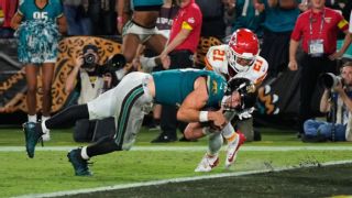 JACKSONVILLE, Fla. -- Trevor Lawrence panicked. Liam Coen thought: Throw it away. Travis Hunter had no idea what was going on. It was a chaotic few seconds for the Jacksonville Jaguars, but by the time it was over Lawrence was in the end zone and the Jaguars had a 31-28 victory over the Kansas City Chiefs at EverBank Stadium on Monday night. "It was a crazy, crazy finish," Lawrence said. That's probably the best way to describe his 1-yard touchdown run after he fell when right guard Patrick Mekari stepped on his foot -- though Coen offered up "goofy." Lawrence tried to get back up, stumbled again, then got to his feet with the intention of throwing the ball away before seeing a lane and taking off, eventually diving into the end zone with 23 seconds left. It might have been an unconventional finish, but it was a significant moment for the maligned Lawrence, who had a rough start to the season while learning his third offense under his third head coach since the franchise selected him No. 1 in 2021. His second touchdown run capped Jacksonville's comeback from a 14-0 deficit and showed a national audience he can make the Jaguars legitimate contenders in the AFC. "It's a goofy finish, but what a tough moment for him to be able to say he wasn't going to lose, and that's kind of really what it comes down to," Coen said. "He wasn't going to lose and he made an unbelievable individual effort that hopefully can continue to springboard us." Lawrence completed 18 of 25 passes for 221 yards with a touchdown and an interception, with his best throw a 33-yarder to Brian Thomas Jr. on a third down on the winning drive. Three plays later, he took a snap from the 1-yard line, fell, stumbled again, got up, ran to his left, broke a tackle and dove for the TD.  "I mean, I just panicked, honestly," Lawrence said. "I was trying to get up to get the ball out of my hands. We didn't have any timeouts left so I was really going to just stand up and launch it out the back of the end zone." It was fitting that Lawrence won the game with a run because he said after the Sept. 28 game against San Francisco that he felt like he missed some opportunities to run the ball. He ended up leading the Jaguars in rushing Monday night (54 yards on 10 carries), which included a 10-yard TD run in the third quarter. His two scramble TDs against the Chiefs equaled his total scramble TDs in his first four seasons. "That's something I've realized just the first couple weeks. I think I've had some opportunities to be able to extend plays using my legs," Lawrence said. "That's our greatest asset on third down besides guys getting open in coverage. The defensive schemes are really good, and sometimes they cover all the guys, and our O-line has been blocking really well, so being able to escape, use my legs, make the defense defend the whole field ... made a big impact for us tonight." Lawrence also had zero off-target throws for just the second time in this career. He did that while missing tight end Brenton Strange (hip) for the entire second half and losing center Robert Hainsey in the fourth quarter. "Trevor has just been a dog, no matter the adversity that he was [dealing with], what we had to go through," said Hunter, who had a season-high 64 yards receiving on three catches, including a 44-yarder that set up the Jaguars' second touchdown. "He just continued to go next play, next play mindset and continued to bring the offense along with him." What he also did was put the Jaguars atop the AFC with the same record as Buffalo and Indianapolis and proved, by beating Patrick Mahomes head-to-head, that the Jaguars should be taken seriously as a contender. "We have to take it week by week and obviously we think we're a good team, so we believe that," Lawrence said. "But you don't listen to the outside noise and not many of those people were around at the beginning of the season. "So, it's really about the guys in that locker room, the staff, coach, all the people that put the work in and we have that confidence and belief. That's what matters." ESPN Research contributed to this report.