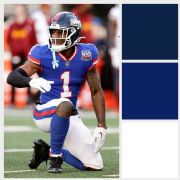 New York GiantsHelmet: Navy Jersey: Legacy blue Pants: White